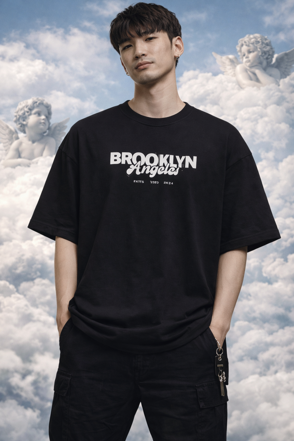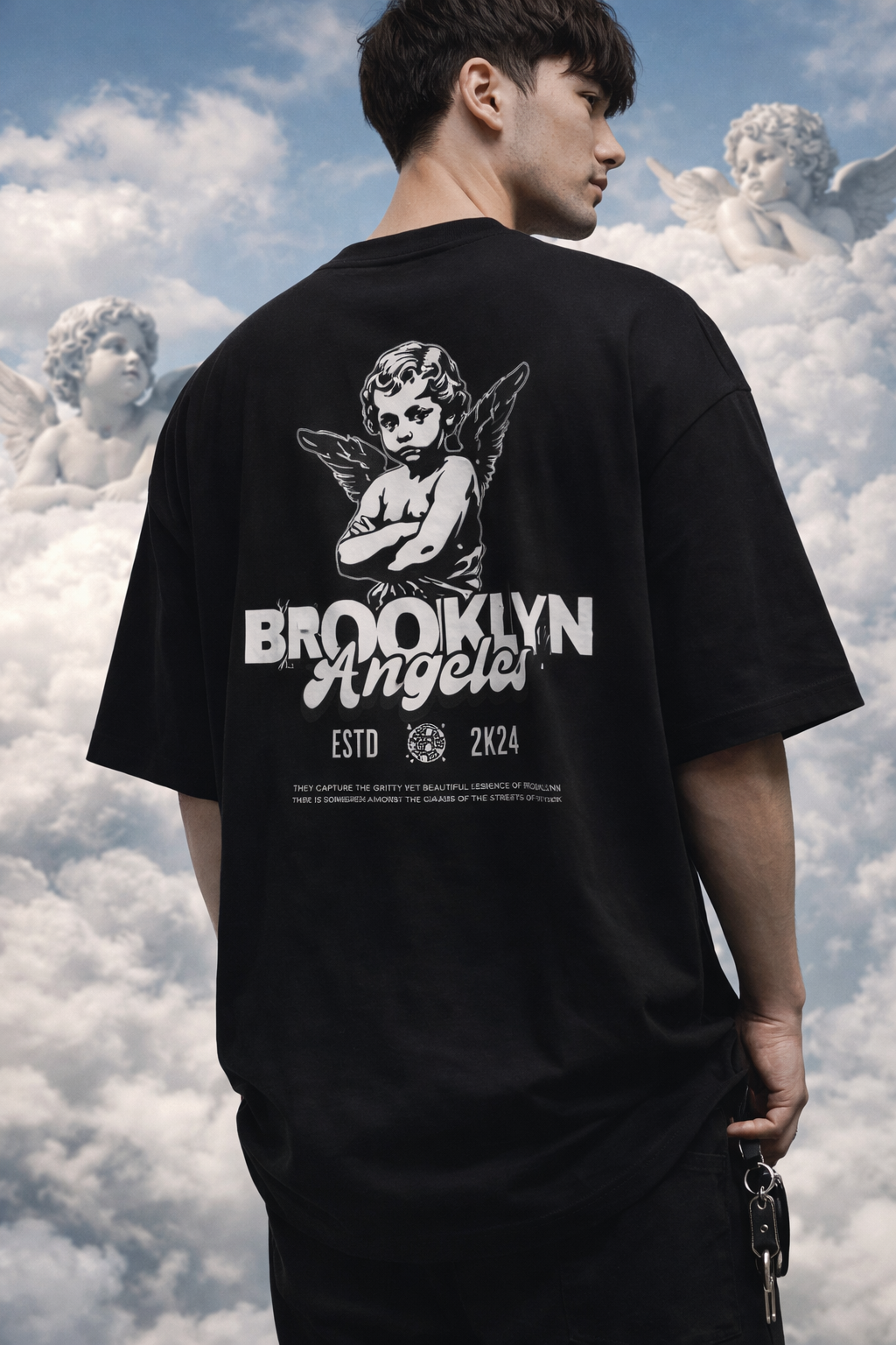 Elevate your streetwear game with the Brooklyn Angels oversized T-shirt. Featuring a striking angel graphic on the back, this piece blends classic art aesthetics with modern urban attitude. The bold “Brooklyn Angels” typography adds a powerful identity, while the monochrome design keeps it timeless and versatile.