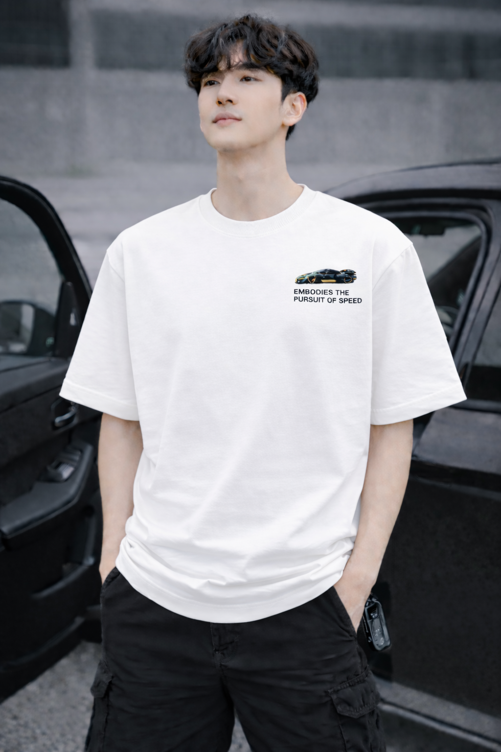 Made from high-quality breathable cotton, the tee offers a relaxed oversized fit for all-day comfort and effortless street appeal. The crisp white base enhances the contrast of the detailed supercar artwork and typography, making it a standout piece for urban fashion enthusiasts.